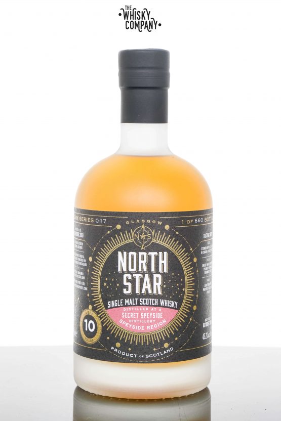This single cask single malt whisky was distilled in 2010 at a secret distillery in the Speyside region of Scotland before being placed in a refill Oloroso Sherry butt and then finished in 2 fresh Oloroso Sherry hogsheads. In 2021 it was bottled at 43.2% abv as part of the North Star Cask Series Number 017. Only 660 bottles were produced for worldwide distribution.